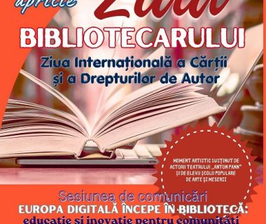 Ziua Bibliotecarului Ziua Internațională a Cărții și a Drepturilor de Autor Joi, 23 aprilie 2026, ora 11.30, la Biblioteca Județeană…