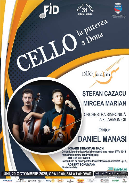 📌 Vă așteptăm cu drag la concertul simfonic 🎵CELLO LA PUTEREA A DOUA🎵, ce va avea loc luni, 20 octombrie 2025, la ora 19.00 în Sala Lahovari la Filarmonica „Ion Dumitrescu”❗