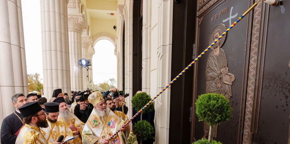 Sunt trei intrări principale în Catedrala cu uși din bronz, încadrate în piatră, adusă din Dobrogea. Deasupra intrărilor vor fi și 24 de icoane în mozaic.