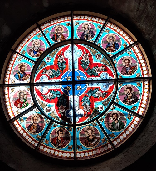Vitraliile sunt făurite de un meșter sticlar din Capitală. Pe cele 18 vitralii din altar sunt reprezentați serafimii.