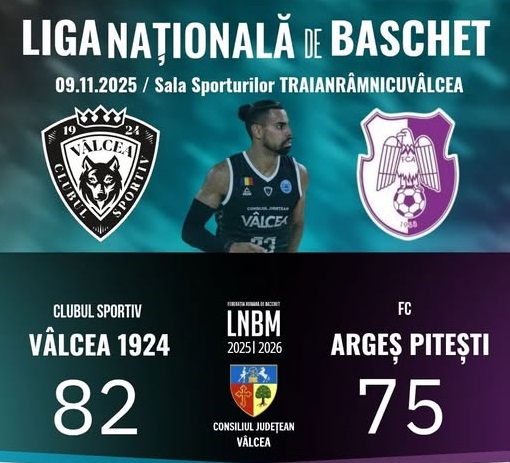 Duminică, 9 noiembrie, în Liga Națională de Baschet Masculin, în Sala Sporturilor „Traian” Râmnicu Vâlcea, Club Sport Vâlcea 1924 a primit vizita echipei FC Argeș Pitești, obținând o victorie importantă, cu scorul final: 82-75 (16-18), (20-21), (23-21), (23-15).