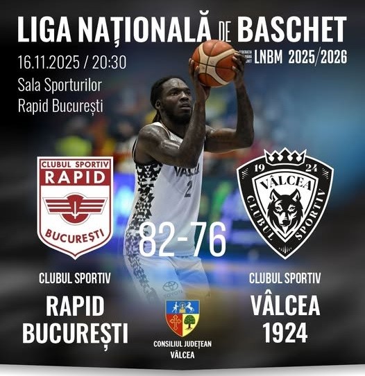 Duminică-seara, 16 noiembrie 2025, în cadrul etapei a 8-a, a Ligii Naționale de Baschet Masculin, Club Sport Vâlcea 1924 a întâlnit în deplasare, în Sala Sporturilor „Rapid”, echipa locală Club Sportiv Rapid București.