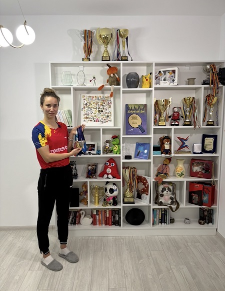 Din locuința sportivei nu putea lipsi colțul cu medalii și trofee.