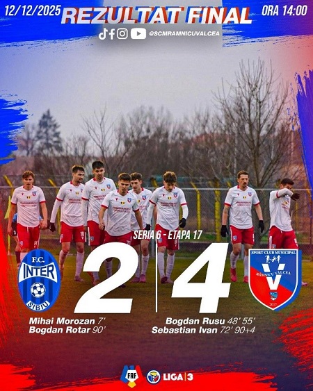 În Liga a III-a, Seria 6, Grupa F, a Campionatului Național de Fotbal, liderul Sport Club Municipal (SCM) Râmnicu Vâlcea s-a deplasat la Sibiu, Asociația Fotbal Club (AFC) Inter Stars 2020 Sibiu, echipă aflată pe locul 6, cu 24 de puncte, în luptă pentru accederea în play-off.