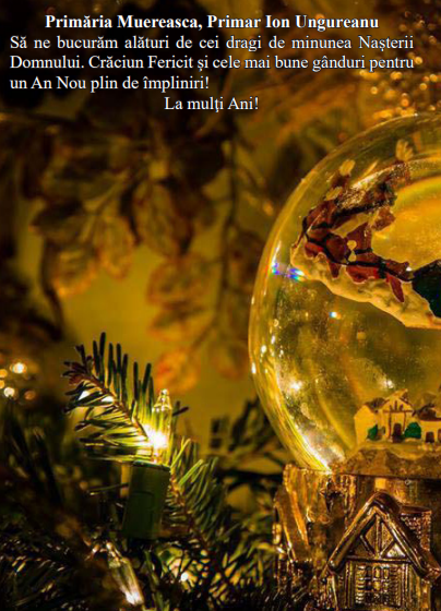 - Primăria Muereasca, Primar Ion Ungureanu vă urează Crăciun Fericit şi cele mai bune gânduri pentru un An Nou plin de împliniri! La mulţi Ani!
