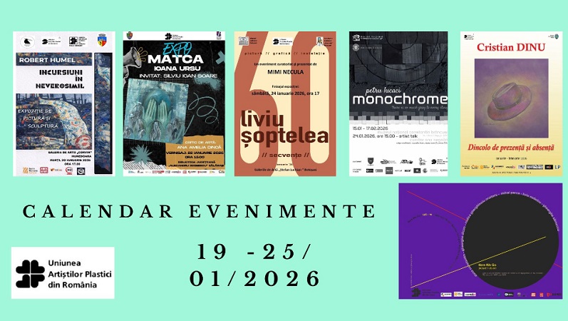 Uniunea Artiștilor Plastici din România organizează luni, 19 ianuarie 2026, de la ora 15,00, la Galeria Uniunii Artiștilor Plastici din București (str. Tipografilor, nr. 1A), vernisajul expoziției „Here We Go”. Pe simeze vor putea fi admirate lucrări semnate de: Dana Constantin, Gheorghe Dican, Rodica Gherghinoiu Croitoru, Mihai Perca, Liviu Nedelcu, Gheorghe Zărnescu. Expoziția poate fi vizitată în perioada 19 ianuarie – 20 februarie 2026, de luni până vineri, conform programului UAP.