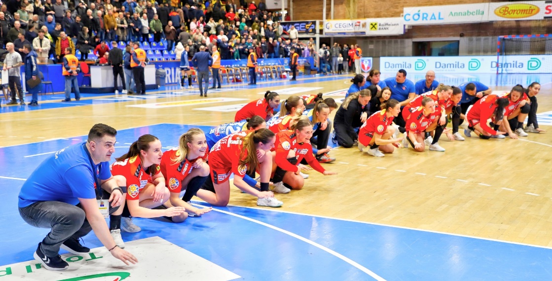 Sala Sporturilor „Traian” devine un vacarm, spectatorii exultă, jucătoarele SCM Râmnicu Vâlcea sunt în culmea bucuriei, în frunte cu temperamentalul și vulcanicul Constantin Florentin Pera, antrenorul principal.
