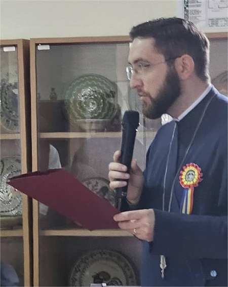 Apoi, Andrei-Ovidiu Leonte, preotul paroh al Parohiei Vlădești, a dat citire mesajului al Arhiepiscopului Râmnicului, Înaltpreasfințitul Vasarnufie, din care cităm: «… meșteșugarul Dumitru Șchiopu, în strădania sa de a crea obiecte care au îmbogățit viața a numeroase comunității, s-a smerit în fața lui Dumnezeu, recunoscând în munca sa ajutorul și belșugul de daruri, de „talanți”, cu care i-a fost înveșmântată viața și întreaga lucrare. Meșteșugarul care știe să prețuiască darurile primite de la Dumnezeu reușește să sporească în lucrarea, în arta sa, căreia îi imprimă o frumusețe aparte, prin grija față de simbolurile pe care le reprezintă, prin armonia formelor, prin căldura culorilor…»