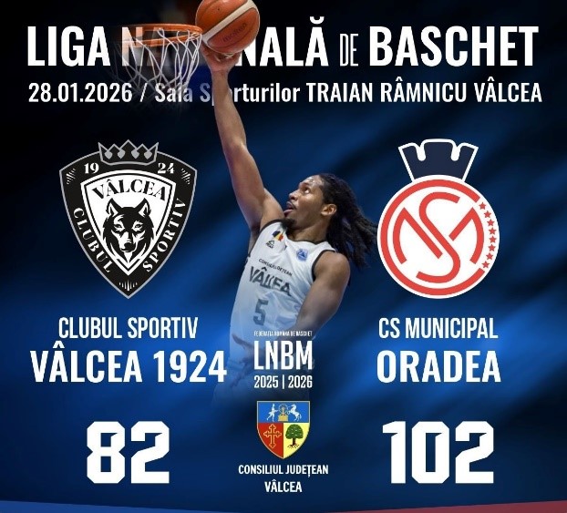 Într-un meci contând pentru etapa a 15-a a Campionatului Național Baschet Masculin, SC Vâlcea 1924 Râmnicu Vâlcea a întâlnit miercuri, 27 ianuarie 2026, în Sala Sporturilor „Traian”, pe vicecampioana României, CSM CSU Raiffeisen Oradea, lidera la zi în clasament.