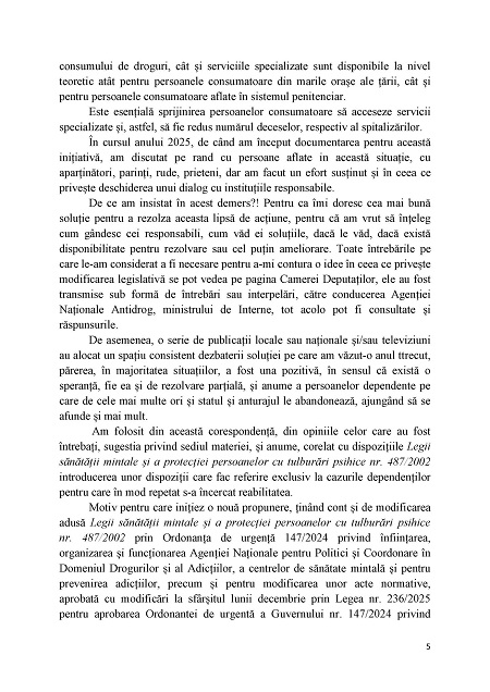 Am depus la Parlamentul României o inițiativă legislativă menită să permită familiilor celor scăpați de sub control din cauza consumului de droguri să-i interneze fără acord, nevoluntar, pentru a fi tratați. Salvați, adică.