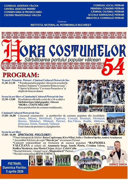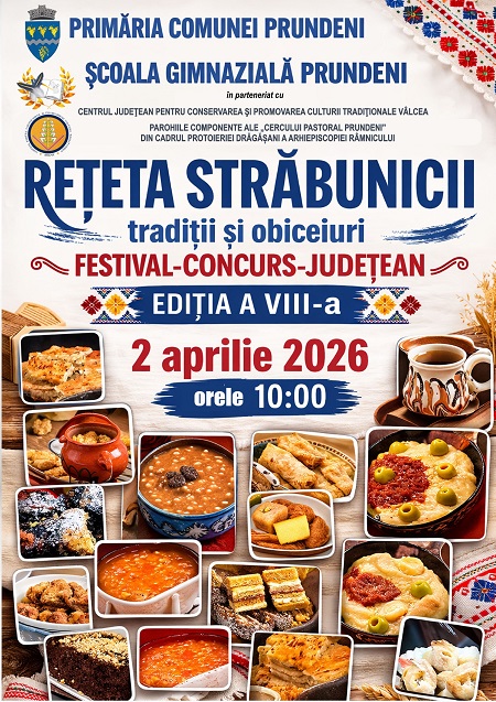 Centrul Județean pentru Conservarea și Promovarea Culturii Tradiționale Vâlcea organizează, în parteneriat, Festivalul- concurs- județean „„Rețeta străbunicii” – tradiții și obiceiuri, în ziua de 2 aprilie, în comuna Prundeni și Sărbătoarea portului popular vâlcean „Hora costumelor”, în data de 5 aprilie, în comuna Pietrari.